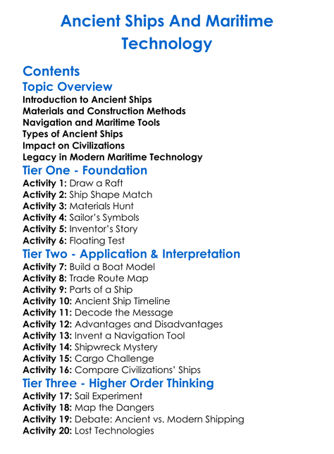 Ancient Ships And Maritime Technology Worksheet Activity Booklet