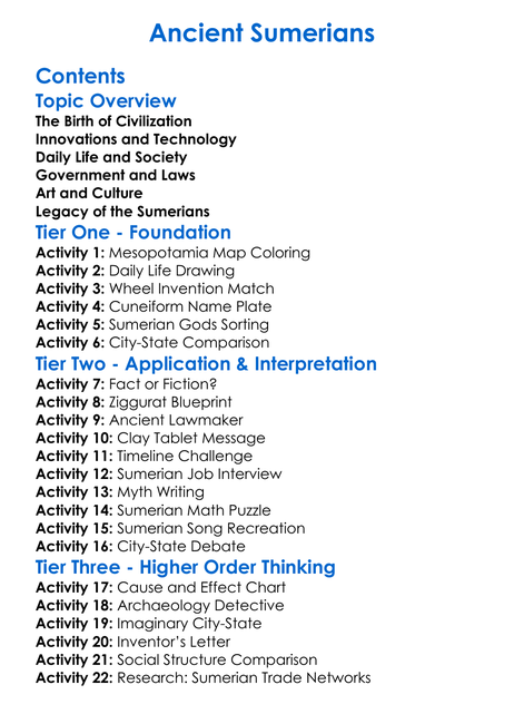 Ancient Sumerians Worksheet Activity Booklet