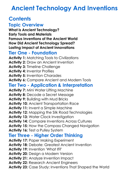 Ancient Technology And Inventions Worksheet Activity Booklet