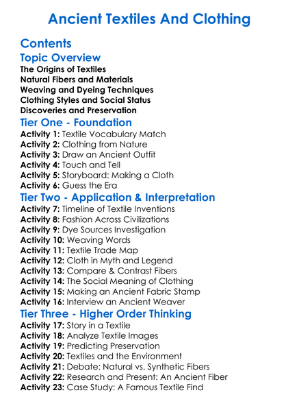 Ancient Textiles And Clothing Worksheet Activity Booklet