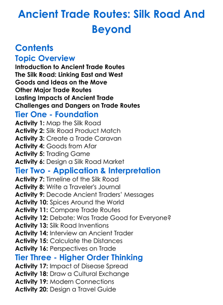 Ancient Trade Routes Silk Road And Beyond Worksheet Activity Booklet