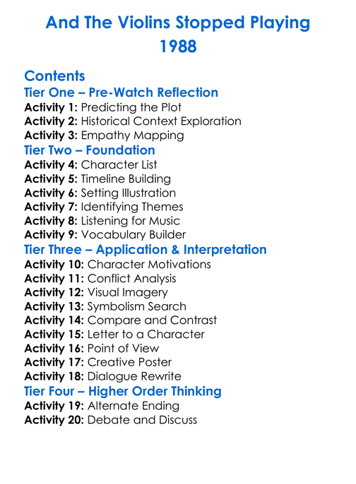 And The Violins Stopped Playing 1988 Worksheet Activity Booklet