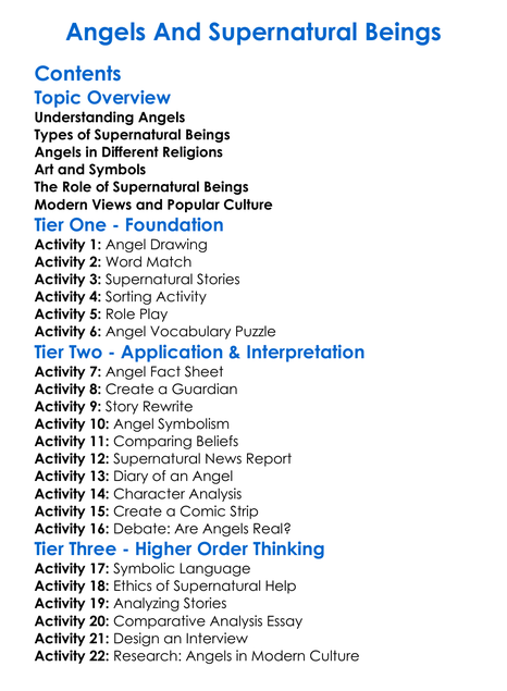 Angels And Supernatural Beings Worksheet Activity Booklet
