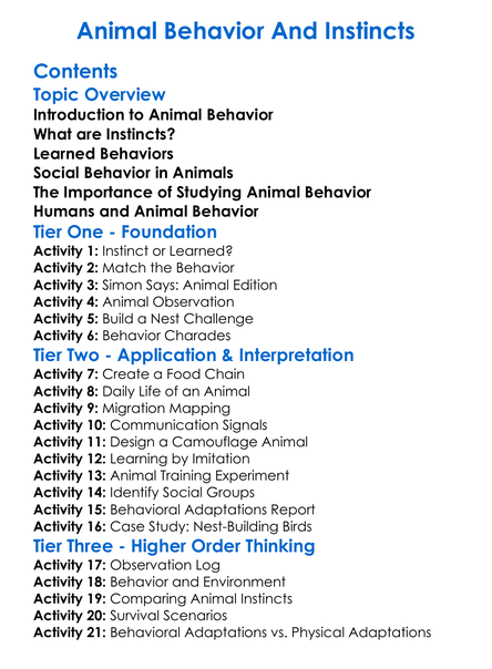 Animal Behavior And Instincts Worksheet Activity Booklet