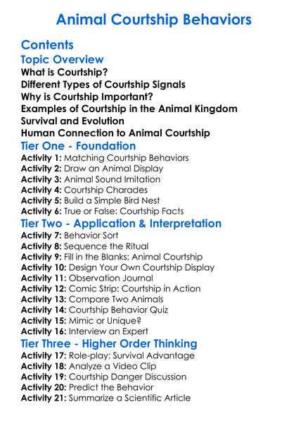 Animal Courtship Behaviors Worksheet Activity Booklet