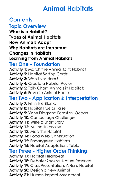 Animal Habitats Worksheet Activity Booklet