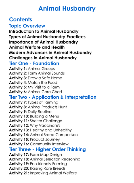 Animal Husbandry Worksheet Activity Booklet