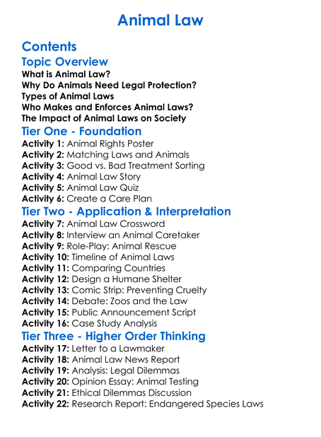 Animal Law Worksheet Activity Booklet