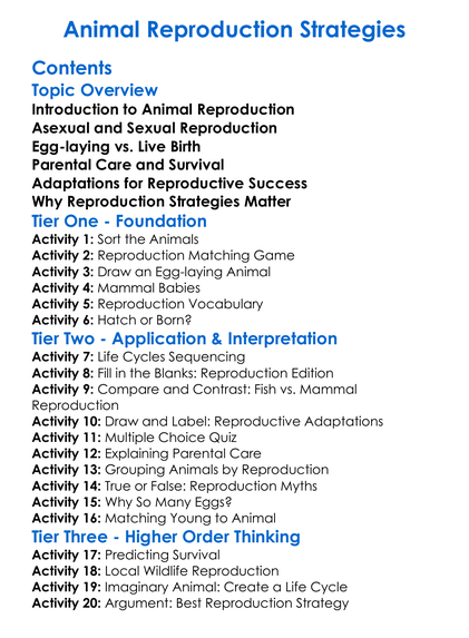 Animal Reproduction Strategies Worksheet Activity Booklet