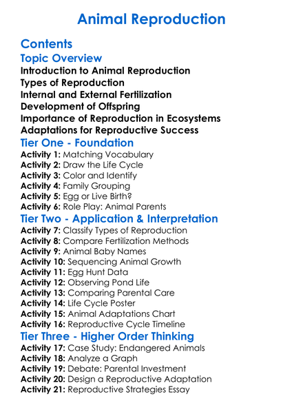 Animal Reproduction Worksheet Activity Booklet