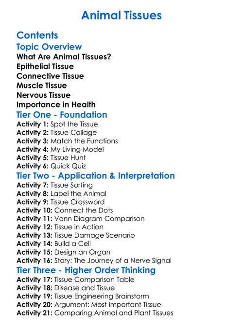 Animal Tissues Worksheet Activity Booklet