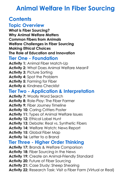 Animal Welfare In Fiber Sourcing Worksheet Activity Booklet