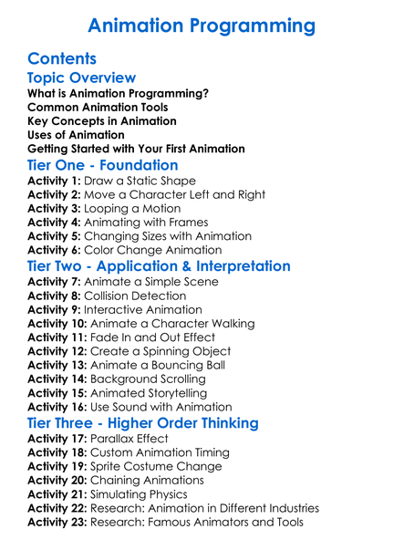 Animation Programming Worksheet Activity Booklet