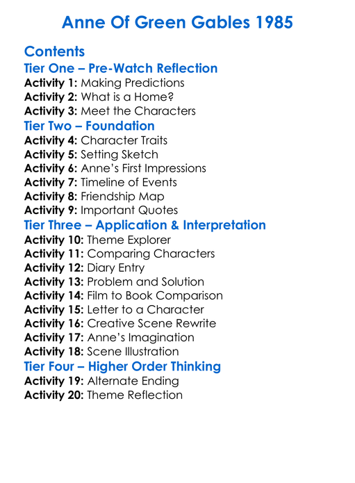 Anne Of Green Gables 1985 Worksheet Activity Booklet