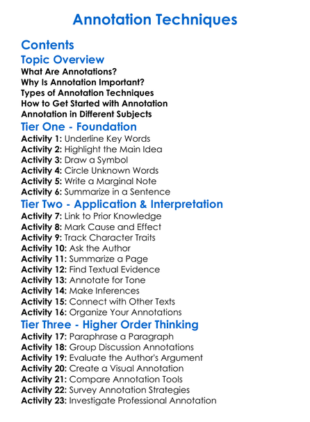 Annotation Techniques Worksheet Activity Booklet