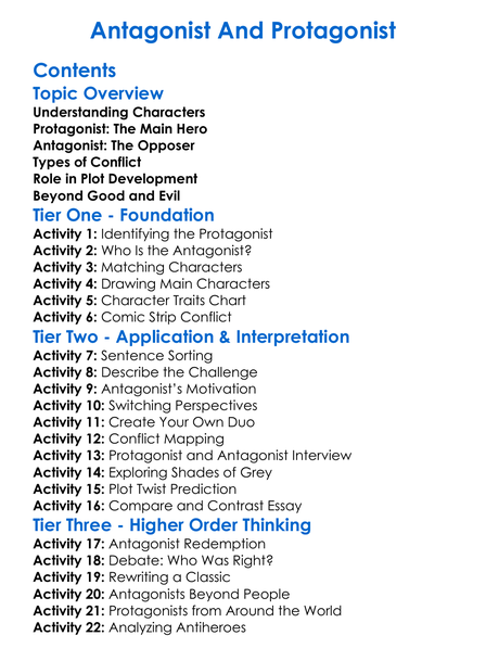 Antagonist And Protagonist Worksheet Activity Booklet