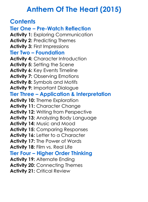 Anthem Of The Heart 2015 Worksheet Activity Booklet