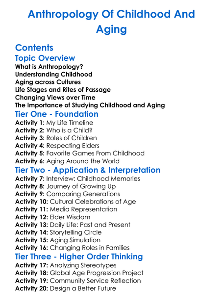 Anthropology Of Childhood And Aging Worksheet Activity Booklet
