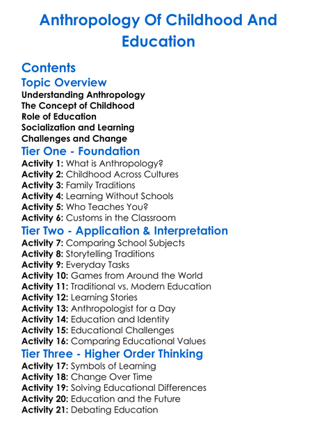 Anthropology Of Childhood And Education Worksheet Activity Booklet