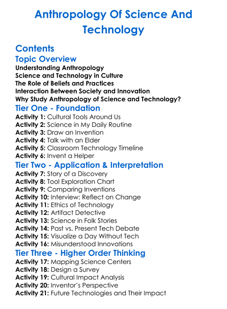 Anthropology Of Science And Technology Worksheet Activity Booklet