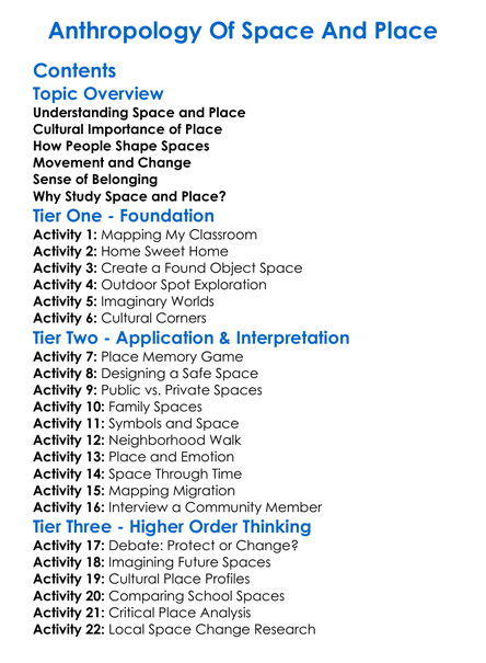 Anthropology Of Space And Place Worksheet Activity Booklet