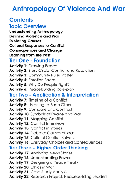 Anthropology Of Violence And War Worksheet Activity Booklet