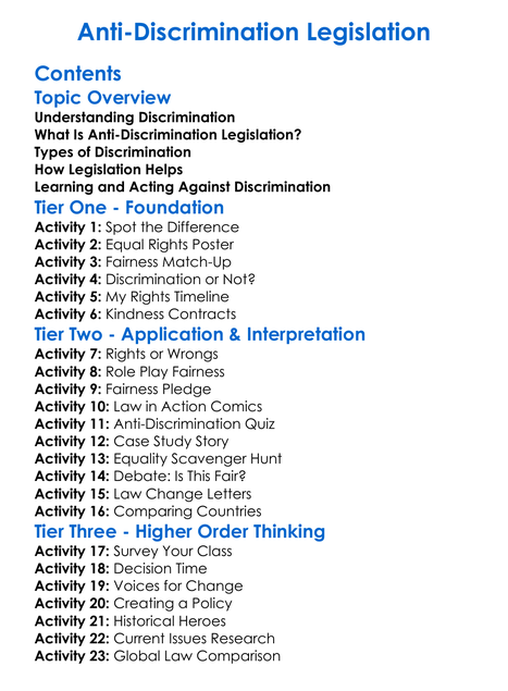 Anti-Discrimination Legislation Worksheet Activity Booklet