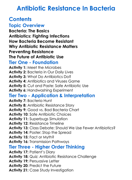Antibiotic Resistance In Bacteria Worksheet Activity Booklet