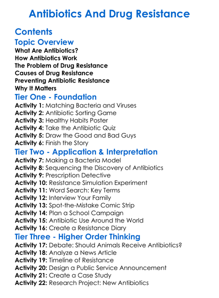 Antibiotics And Drug Resistance Worksheet Activity Booklet