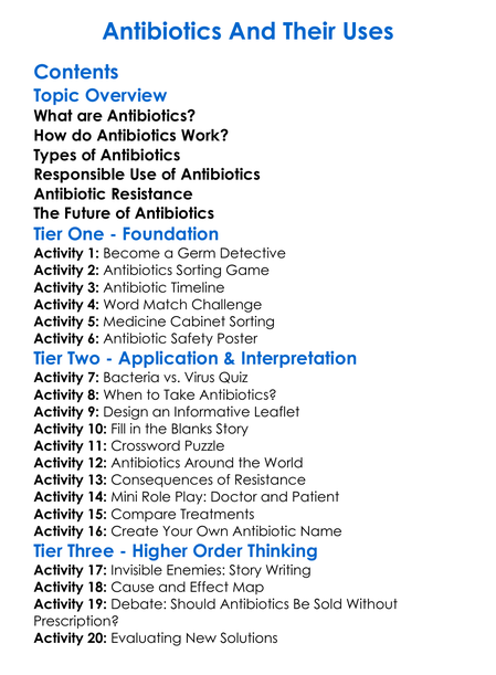 Antibiotics And Their Uses Worksheet Activity Booklet