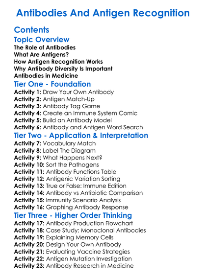Antibodies And Antigen Recognition Worksheet Activity Booklet