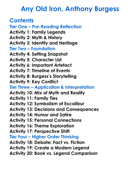 Any Old Iron Anthony Burgess Worksheet Activity Booklet