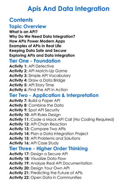 Apis And Data Integration Worksheet Activity Booklet