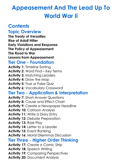 Appeasement And The Lead Up To World War Ii Worksheet Activity Booklet