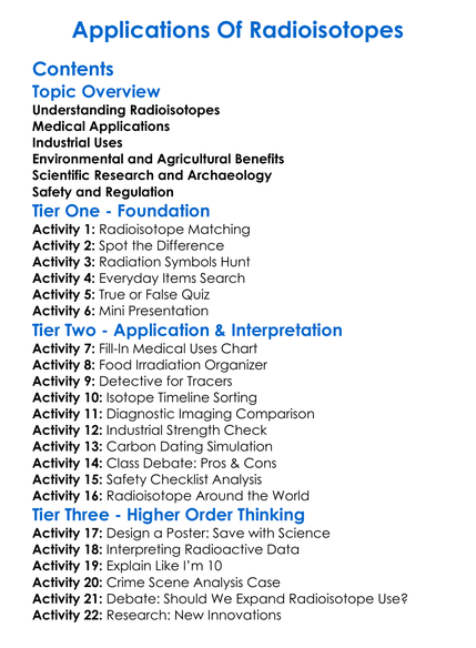 Applications Of Radioisotopes Worksheet Activity Booklet