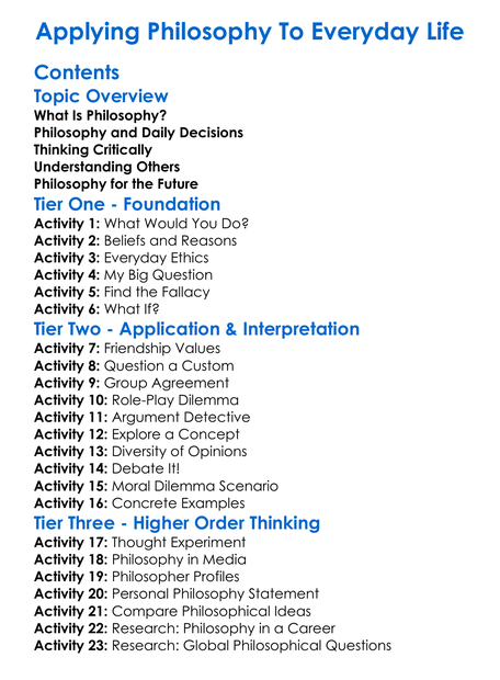 Applying Philosophy To Everyday Life Worksheet Activity Booklet