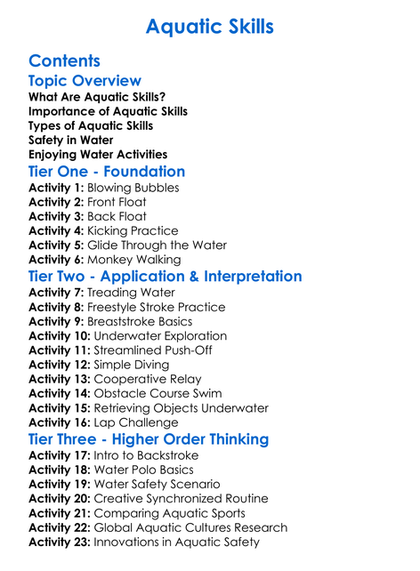 Aquatic Skills Worksheet Activity Booklet