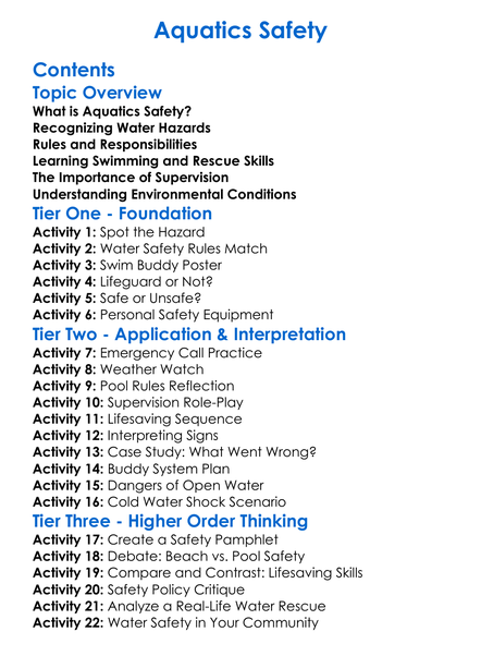Aquatics Safety Worksheet Activity Booklet