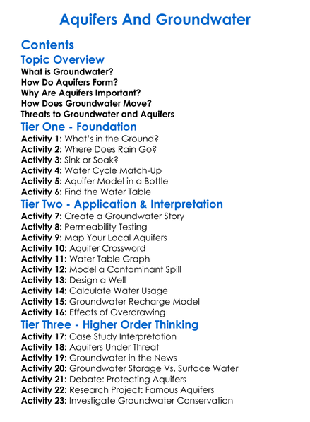 Aquifers And Groundwater Worksheet Activity Booklet