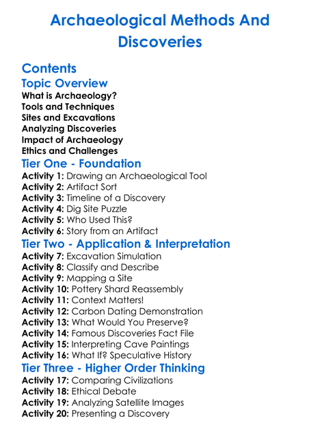 Archaeological Methods And Discoveries Worksheet Activity Booklet