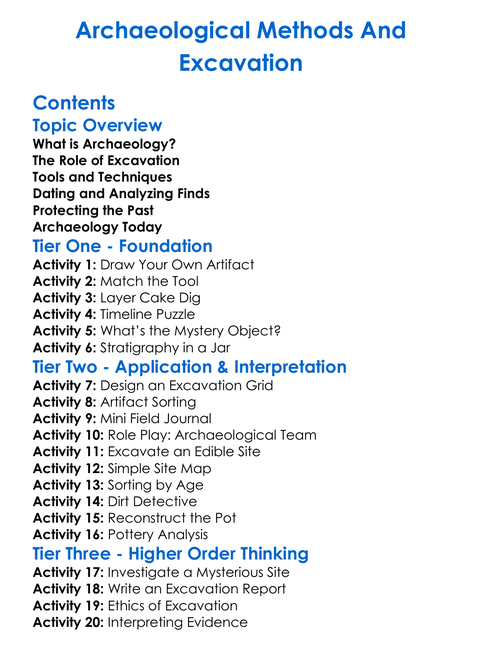 Archaeological Methods And Excavation Worksheet Activity Booklet