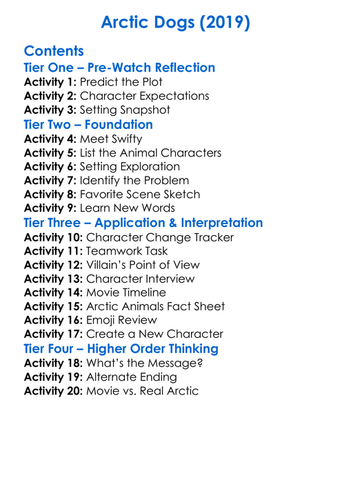 Arctic Dogs 2019 Worksheet Activity Booklet