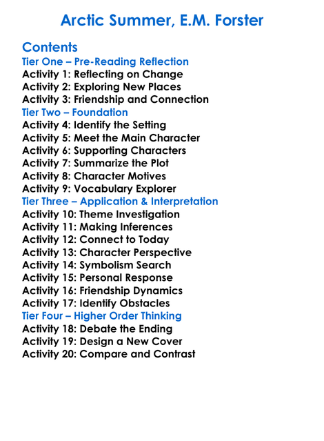 Arctic Summer Em Forster Worksheet Activity Booklet
