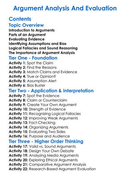 Argument Analysis And Evaluation Worksheet Activity Booklet