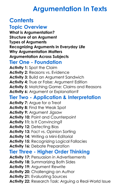 Argumentation In Texts Worksheet Activity Booklet