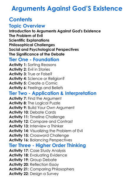 Arguments Against Gods Existence Worksheet Activity Booklet