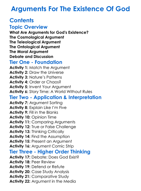 Arguments For The Existence Of God Worksheet Activity Booklet
