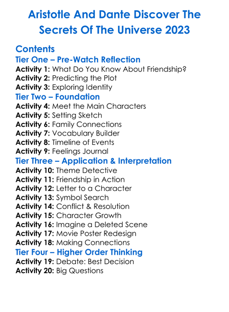Aristotle And Dante Discover The Secrets Of The Universe 2023 Worksheet Activity Booklet