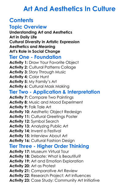 Art And Aesthetics In Culture Worksheet Activity Booklet