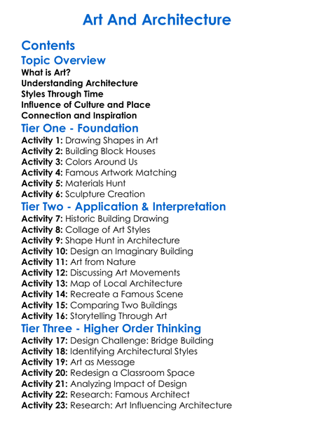 Art And Architecture Worksheet Activity Booklet